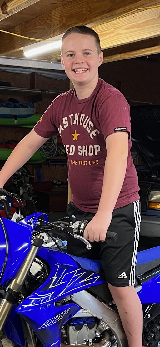 Jake is 13 years old. He is home-schooled and helps out around the shop. He races dirt bikes and likes to go fast!